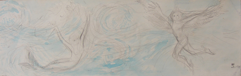oliepastel en kraspen, 45x28cm. / 1961